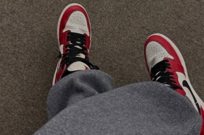 특히 조던 스니커즈에 트레이닝팬츠를 매치한 룩은 누가 보면 그냥 가볍게 입은 것 같지만 운동화 컬러가 포인트가 되어 밋밋하지 않았어요.