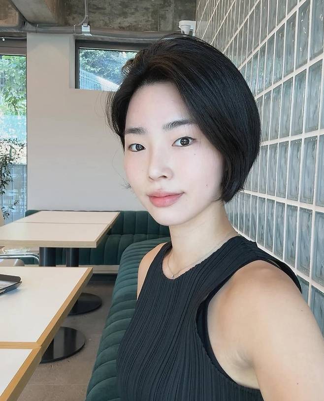 조혜원은 플리츠 디테일이 돋보이는 블랙 민소매 톱으로 단정하면서도 강단 있는 이미지를 연출했습니다.