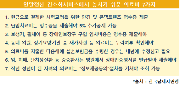납세자연맹, 연말정산 간소화서비스에서 놓치기 쉬운 의료비 7가지 안내