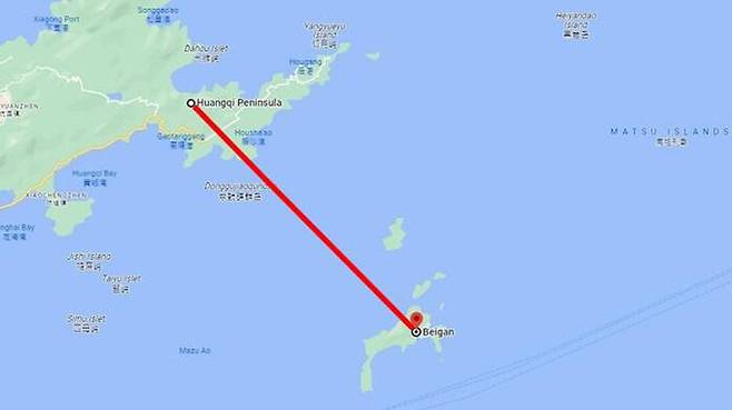 푸젠성 황치반도에서 마쭈 열도 베이간다오까지 직선거리는 약 12㎞에 불과합니다.