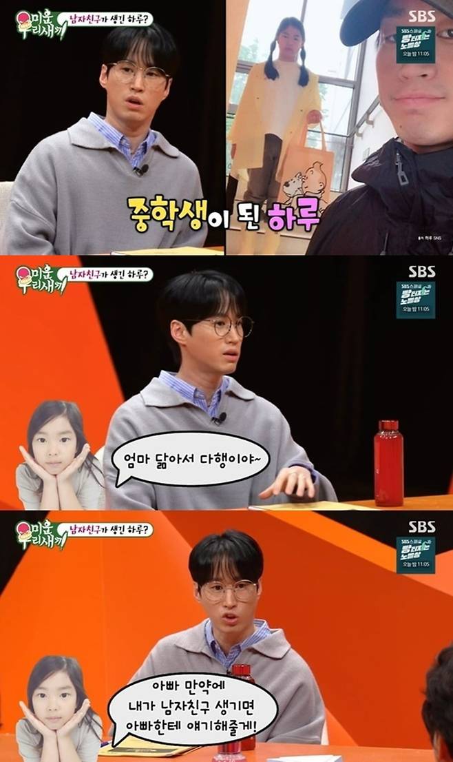 하루가 남자친구 이야기도 하냐고 묻자 타블로는 “얼마 전에 갑자기 ‘남자친구 생기면 먼저 이야기해줄게’ 그러더라. 솔직히 이 말을 언젠가 들으면 내가 감당 못할 줄 알았다. 그런데 들으니까 나한테 이야기해줄 정도로 좋게 생각하는 구나 느꼈다”고 말했다.