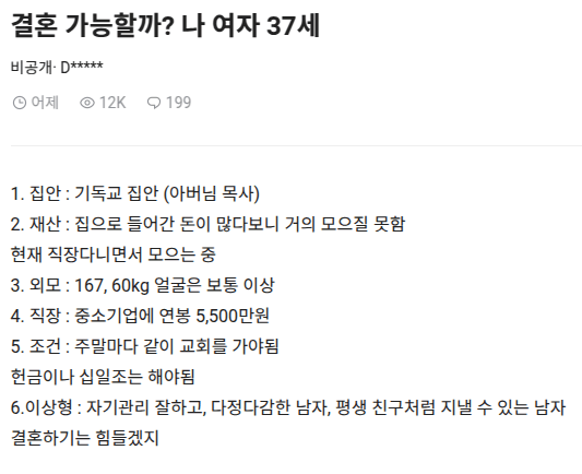자기는 결혼하기 힘들 것 같다는 37살 여자