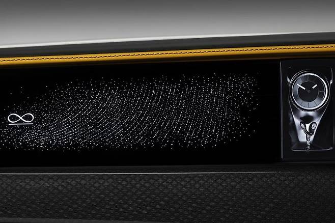 좌석에는 가죽에 수만 개의 작은 천공을 뚫어 예술 작품을 만드는 ‘플레이스드 퍼포레이션(Placed Perforation)’ 기법이 적용되었으며, 시트 일부분에는 식물에서 영감을 얻은 새로운 소재인 ‘듀얼리티 트윌(Duality Twill)’이 사용되었습니다. 중앙 정보 디스플레이에는 롤스로이스의 첨단 운영체제 ‘스피릿(SPIRIT)’이 내장되어 비스포크 주문을 디지털 영역까지 확장했습니다. 스피릿은 롤스로이스 고객 전용 앱 ‘위스퍼스(Whispers)’와 연동되어 목적지 전송, 위치 확인 및 잠금 관리 등을 원격으로 제어할 수 있습니다.