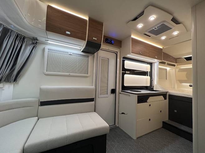 차량은 전체 길이가 짧고 무게도 가벼운 싱글 액슬(단일 차축) 타입 트레일러로, 견인과 이동이 용이하면서도 기본적인 생활 기능은 모두 갖췄다는 점이 가장 큰 특징이다. 가족을 위한 고정형 더블 침대부터, 변환식 다이넷 침대를 포함한 2개의 수면 공간, 주방, 그리고 샤워 공간이 포함된 욕실까지 완비돼 있다.