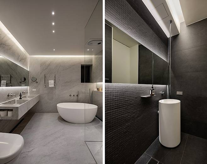 건축주는 당시 대중적이지 않았던 스페셜 페인트와 다소 화려한 패턴의 알래스카 화이트 대리석을 선택하기까지 고민이 많았지만, 시공 후 보면 볼수록 편안함과 고급스러움이 느껴져 만족도가 높다고 소감을 전했다.