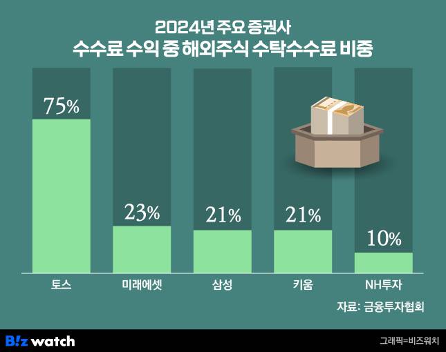 이에 따라 28개사의 해외주식 수수료가 전체 수수료 수익에서 차지하는 비중도 12%로 집계됐다. 2023년(당시 해외주식 중개 수수료 산출 증권사 27곳) 기준으로는 6%였는데 두 배로 존재감을 키운 것이다.