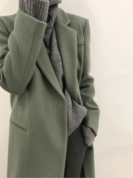 그레이의 세련된 맛은 물론 멋스러운 올리브그린 컬러가 더해져 출근룩으로도 외출복으로도 무리없이 소화할 수 있다.