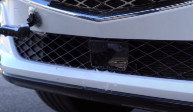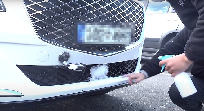 눈이 오는 길을 주행하다 보면 이처럼 전방 레이더 센서에 눈이나 얼음으로 뒤덮이는 일이 발생하고는 합니다. 마지막으로는 눈길을 주행하는 상황을 재현하여 실험해 보았습니다.