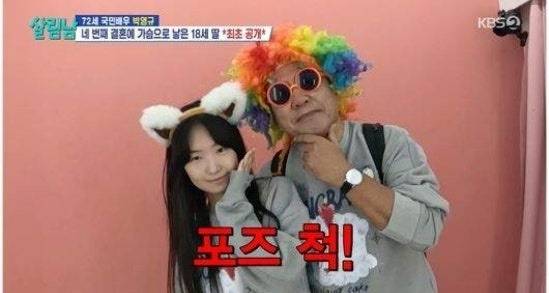 포기하지 않고 사랑을 찾아 나선 박영규 아저씨! 2019년 12월, 드디어 지금의 아내분과 네 번째 결혼에 골인하셨대요! 게다가 아내는 무려 25세 연하의 일반인이라니…!! 결혼 당시 박영규 아저씨는 71세, 아내는 46세였다고 해요. 😲