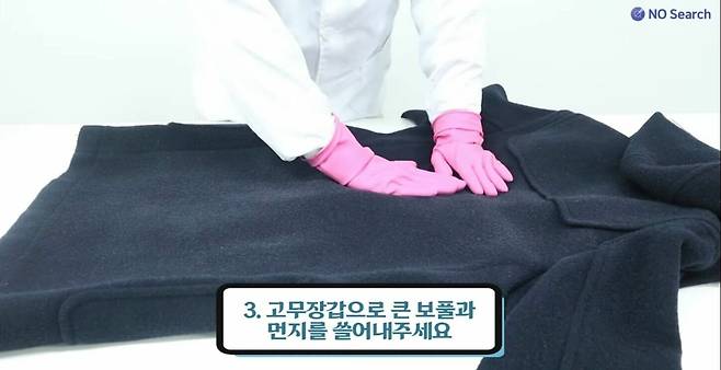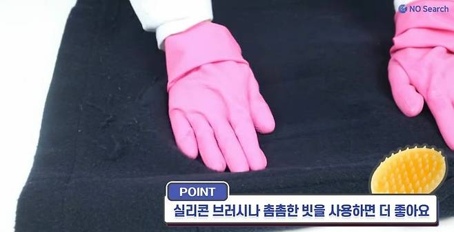 ③ 큰 보풀은 고무장갑으로