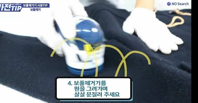 깔끔한 보풀 제거를 하면서 옷감에 최대한 손상이 가지 않게 하려면, 원을 살살 문질러가며 사용하는 것이 좋습니다.
