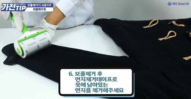 보풀 제거를 하고 나면, 보풀이 먼지통으로 흡입되기도 하지만 옷 위에 그대로 남아있는 섬유찌꺼기를 보게 되기도 합니다. 이를 완벽히 제거하기 위해서는 먼지제거테이프(돌돌이)를 사용해주시면 좋습니다.
