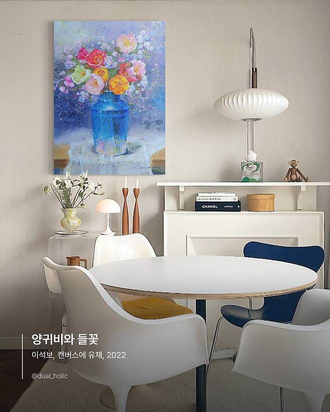 처음 보자마자 탄성이 절로 나오는 그림입니다. 예쁜 색감과 마치 생화를 벽에 걸어둔 것 같아요. 집이 칙칙하다면, 이석보 작가의 <양귀비와 들꽃> 작품을 걸어보세요. 사람들을 집에 초대했을 때 분명 다들 감동할 그림일 겁니다. 눈이 즐거운 예쁜 그림을 찾는다면, 이석보 작가의 작품을 걸어보세요.