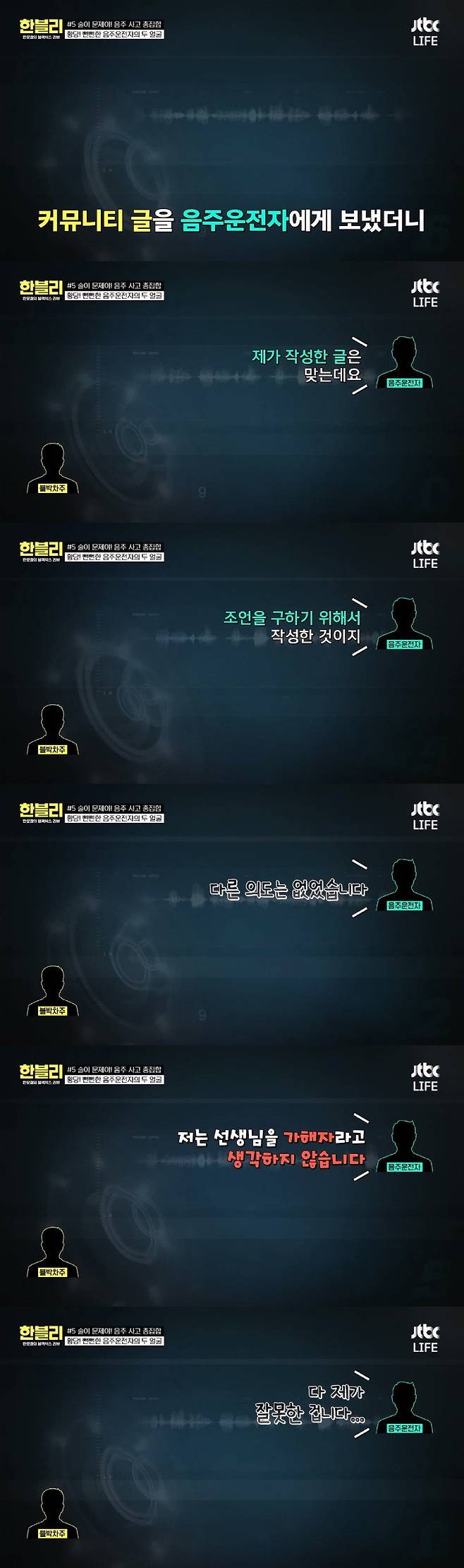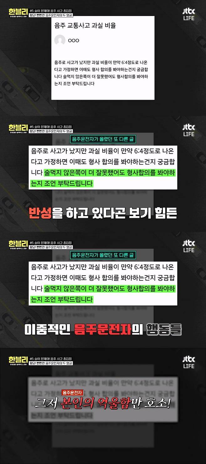해당 게시글에 대해 추궁했으나 다 인정하는 음주운전자