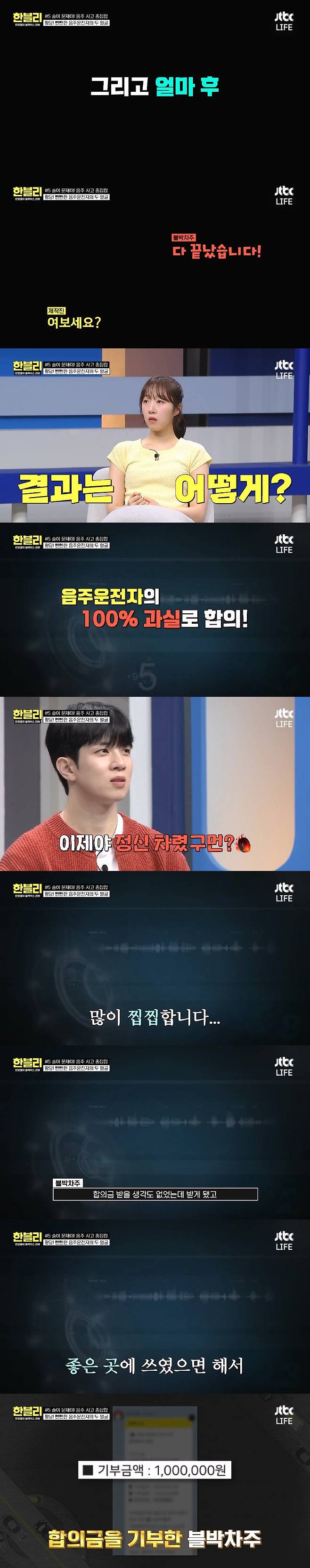 상대가 인정하며 합의금을 받았는데 그 돈이 매우 찝찝하여 기부하심.