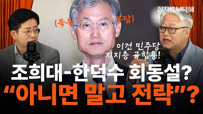 ▷ 조동주: 네 이제 사실 제가 작년에 조희대 대법원장을 인터뷰한 적이 있었거든요. 그래서 이제 원래 보통 대법원장 인터뷰가 이제 법조팀 기자들 사이에서 엄청 핫한 이슈고 제일 힘든 일인데 이제 저희가 작년 6월쯤에 했습니다. 그런데 그때 그래서 조희대 대법원장실을 이렇게 딱 들어가면 이제 바로 앞에 이렇게 큰 접견용 테이블 같은 게 있고 이제 그 왼쪽으로는 이제 길쭉한 이제 회의용 테이블이 있어요. 그래서 오른쪽에 접견용 왼쪽에 그 회의용 테이블이고 그 뒤로 이제 대법원장 책상이 있거든요. 그런데 이제 그런 구도에서 이제 처음에 인터뷰를 하러 갔을 때 뭐 이런저런 얘기를 하다가 대법원장님은 점심은 어떻게 드세요?” 이렇게 물어봤었거든요. 근데 그때 조희대 대법원장은 늘 본인은 혼밥을 한 대요. 그래서 점심에도 사람들을 안 만나고 그 아까 말씀드린 입구 들어가서 왼쪽에 있는 그 회의용 테이블에 헤드 테이블. 위치까지 정확하게 얘기하더라고요. 거기에 앉아서 식사를 하시고 밥은 이제 대법원에 있는 구내식당에서 갖다 드리면 그걸 드신다고 하시더라고요. 그래서 아 왜 그렇게 외부인까지 안 만나냐 뭐 이제 식사까지 혼자 하시냐 그러니까 그런 불필요한 논란들을 좀 차단하기 위해서 이렇게 자기 관리를 하시는 것처럼 느껴졌습니다. 제가 보기에는 그런데 어제 대정부 질문에서 이제 부승찬 민주당 의원이 이제 뭐 조희대 대법원장이 한덕수 국무총리 김건희 여사 모친의 동거남 이런 분들을 만나서 이재명 대통령 선거법 사건 처리를 모의했다 뭐 이런 식사 자리를 가졌다. 뭐 이런 얘기가 나왔을 때 저는 약간 그 예전 일이 떠오르면서 그럴 분은 아니었던 것 같은데. 이런 제 개인적인 경험에 기반한 생각을 하기도 했었는데 이런 주장까지 나오게 된 거는 뭐 어떤 배경이라고 보십니까?