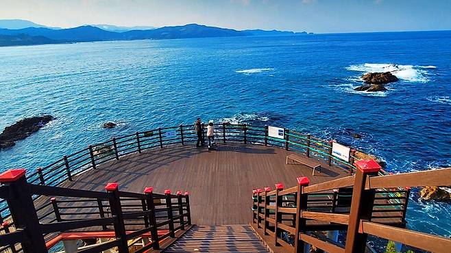 코스 초입의 제1전망대에서는 동해의 짙푸른 바다와 길 전체가 한눈에 내려다보이며, 이곳에서부터 산책의 설렘이 시작된다.