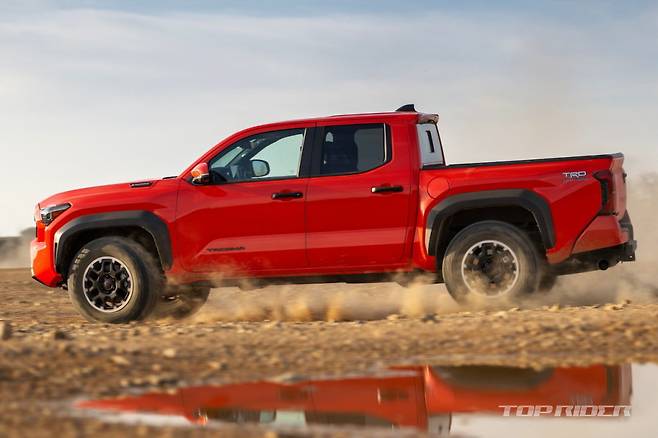신형 타코마 TRD 라인업 가격은 미국 기준 오프로드 4만3295달러(약 6200만원), 프로 6만5230달러(약 9400만원)다. 신형 타코마 TRD는 다이얼로 3가지 압축 댐핑 중 선택이 가능한 2.5인치 Fox 내부 바이패스 충격 장치와 18인치 휠, 33인치 올터레인 타이어 등이 기본이다.