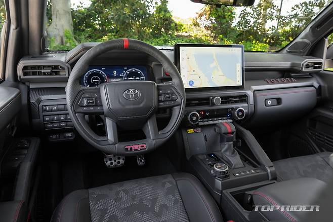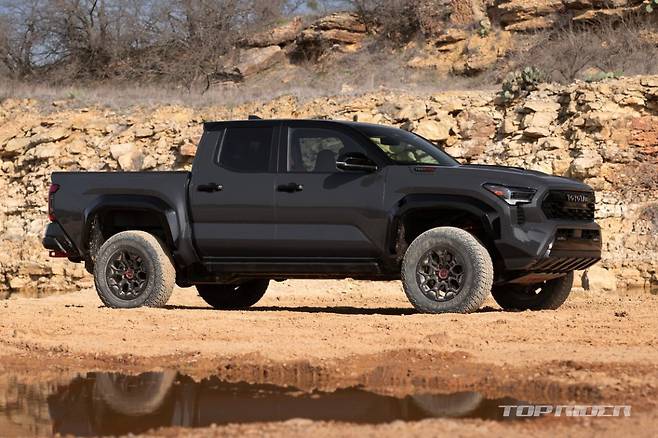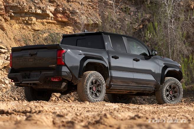 신형 타코마 TRD는 접근각 33.8도, 이탈각 23.5도, 최대 견인력 2948kg, 최저지상고 279mm의 성능을 갖췄다. 신형 타코마에는 이전 세대 V6 가솔린을 대체하는 2.4 터보 하이브리드가 도입됐는데, TRD 오프로드 트림에서는 옵션이고 TRD 프로 트림에서는 기본 파워트레인이다.