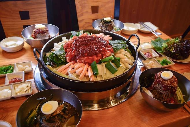 이 외에도 해장국, 닭곰탕과 같은 진한 국물 요리는 술안주로도 그만이며, 새싹을 살포시 올려 놓은 물막국수와 비빔국수 또한 텁텁했던 입안을 상쾌하게 만들어줍니다. 숯불 토종 닭갈비의 맛이 궁금하다면 춘천 맛집 계륵에 방문해 보세요.