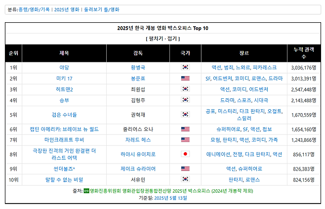 300만넘은 영화가 1등 근데 또 저게 청불영화로는