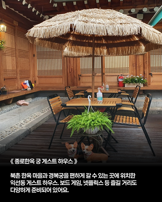 도보로 익선동과 창덕궁, 안국동까지 갈 수 있죠 보드게임과 넷플릭스 시청 등 다양한 즐길 거리도 준비되어 있다고 하네요.