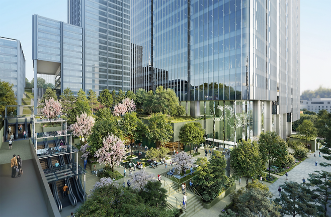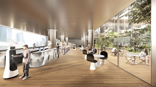 AI 시대에 필수적인 애자일(Agile) 방식의 업무 수행과 부서 간 경계를 허무는 협업을 물리적으로 구현하는 최적의 구조다. 전체 대지 면적의 40%를 시민을 위한 녹지로 조성하고, 서울역에서 남산으로 이어지는 단절된 보행축을 에스컬레이터 등으로 연결해 도시 공공성에도 기여한다.