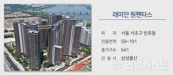 삼성물산이 서울 서초구 반포동에 짓는 ‘래미안 원펜타스’를 분양합니다. 지난 6월 입주를 시작한 후분양 아파트로 분상제 적용을 받습니다. 지하철 9호선 신반포역 초역세권이며 세화여중, 반포중, 세화고, 세화여고 등 학군이 우수합니다. 한강과 남산 조망이 가능한 스카이브릿지, 수영장 등 고급 커뮤니티 시설도 장점입니다.