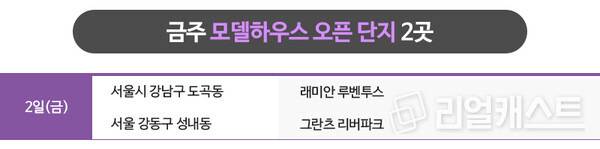 금주에는 서울에서 총 2곳의 모델하우스가 오픈 될 예정입니다.