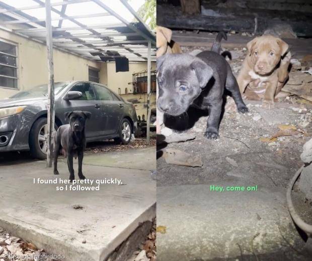 이후 베비아나는 어떤 집 아래 어둡고 비좁은 공간으로 들어갔다. 그리고 그곳에는 놀랍게도 자그마한 강아지들이 옹기종기 모여있었다.