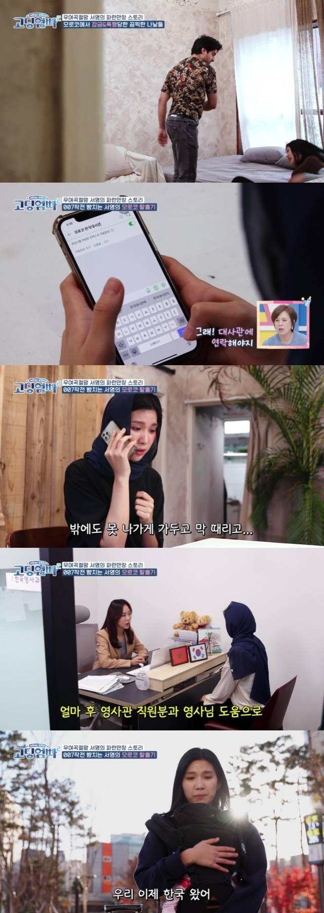 한편 한국으로 돌아온 안서영의 생활은 평탄치 않았다. 한국에 돌아와서도 여전히 모로코에서 탈출하거나 아이 아빠가 와있는 악몽에 시달렸다고. 안서영은 "그때 모로코에서 매일 강요했던 얘기가 '너 한국으로 도망가도 난 너 찾을 수 있어. 내가 못 가도 우리 부모님이 가서 너 찾을 거야'라는 것이어서 불안하다"고 토로했다.