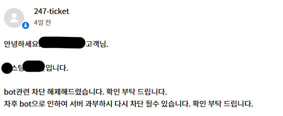 원래 이렇게 bot을 임의로 차단하는 건지 의문이 들었지만 어쨌든 문제가 해결됐을 줄 알았는데...