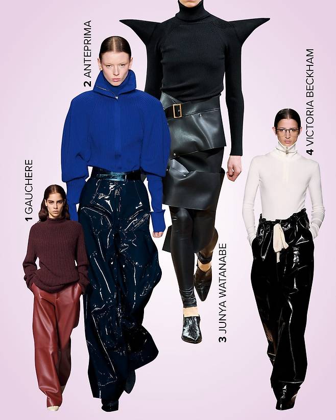 올겨울에도 레더 팬츠의 인기는 계속된다. 정형화되지 않고 보다 다채로운 모습으로.