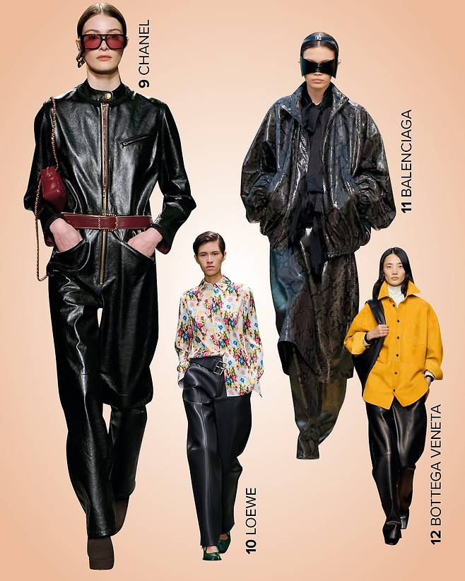12 스타일링을 최대한 절제한 보테가 베네타의 룩은 타이트한 실루엣이 아닌 레더 팬츠를 선택해 더 멋스럽다.