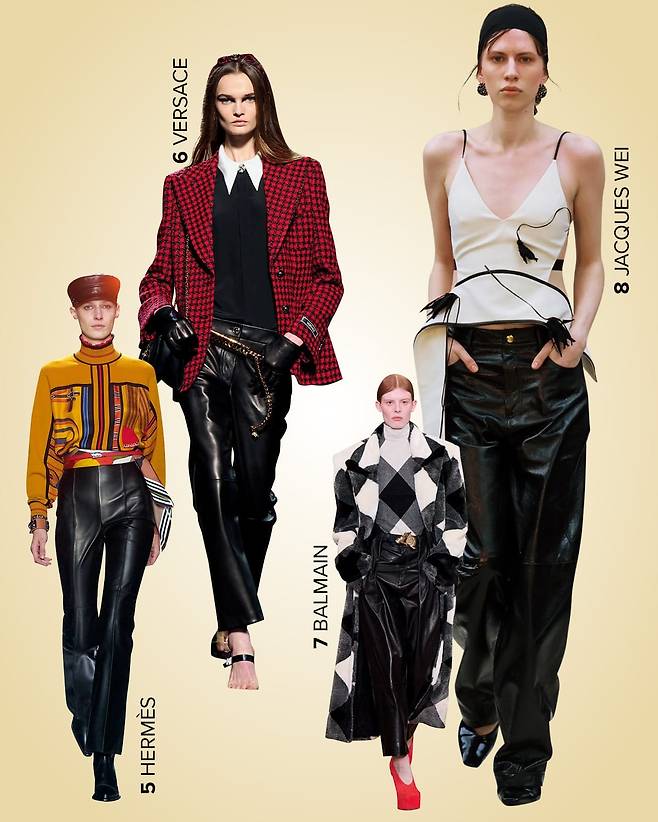 6 관능적인 레더 팬츠의 활용 예. 베르사체 컬렉션에서 찾을 수 있다.