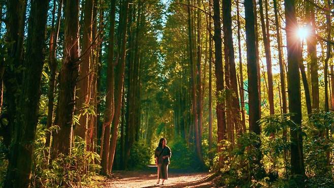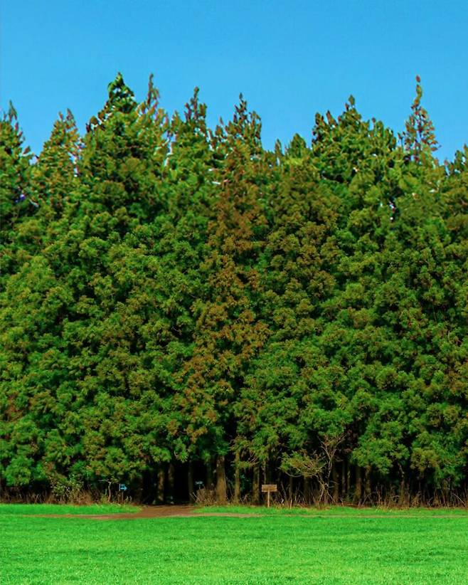 ‘비밀의 숲’이라는 이름으로 알려진 이곳은 제주 동부 안돌오름 인근에 조용히 숨어 있다. 지도에서 쉽게 찾을 수 있는 곳이 아니고 입구 역시 특별한 안내판 없이 조용하게 열려 있다. 처음 마주치는 풍경만 보면 그저 단정한 편백숲처럼 보일 수도 있다.