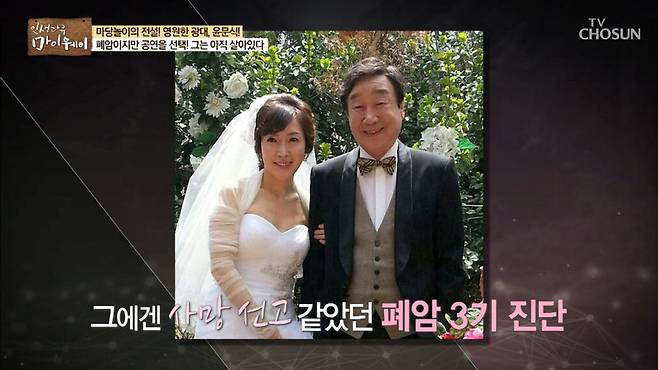 윤문식은 "마당놀이를 하면서 아내를 떠나보냈다. 한 15년 앓았는데 국립극장에서 '심청전'을 할 때였다. 공연 마치면 아내 옆에서 간호했다. 그렇게 떠나보냈다"라면서 "'심청전'에서 '아이고 마누라~'를 외치며 펑펑 울기도 했다"라고 떠올렸습니다.