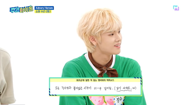 k-pop밴드계 한 획을 그을 Xdinary Heroes가 '주간아이돌'에 출연했습니다! 오프닝부터 엄청난 비밀을 공개한 맴버가 있었다는데!?