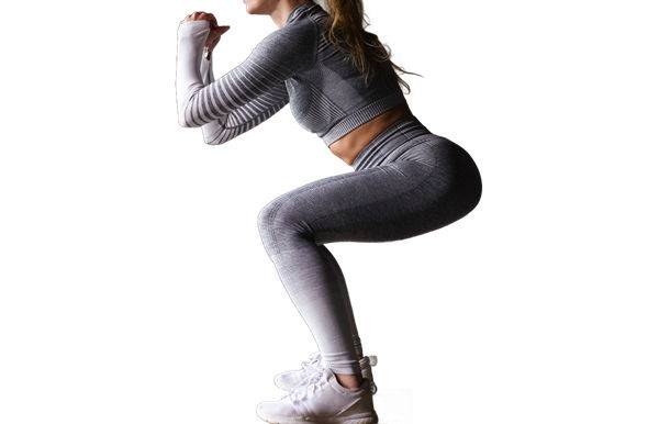 매트에 서서 다리를 어깨너비보다 넓게 벌리고, 발끝은 바깥쪽을 향하게 둡니다. 무릎을 구부리며 엉덩이를 바닥 쪽으로 내리고, 손은 가슴 앞에서 모아줍니다. 일어설 때 손을 내려주며, 상체는 곧게 세우고 시선은 정면을 유지한 채 동작을 반복합니다.