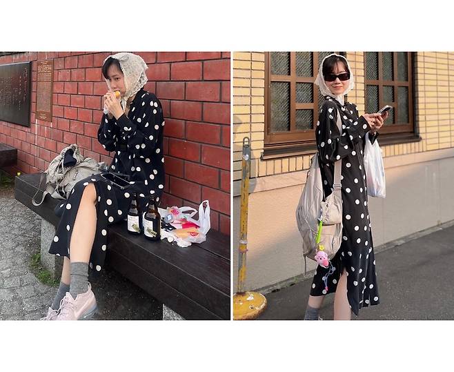 블랙 원피스에 포인트로 사랑스러운