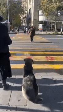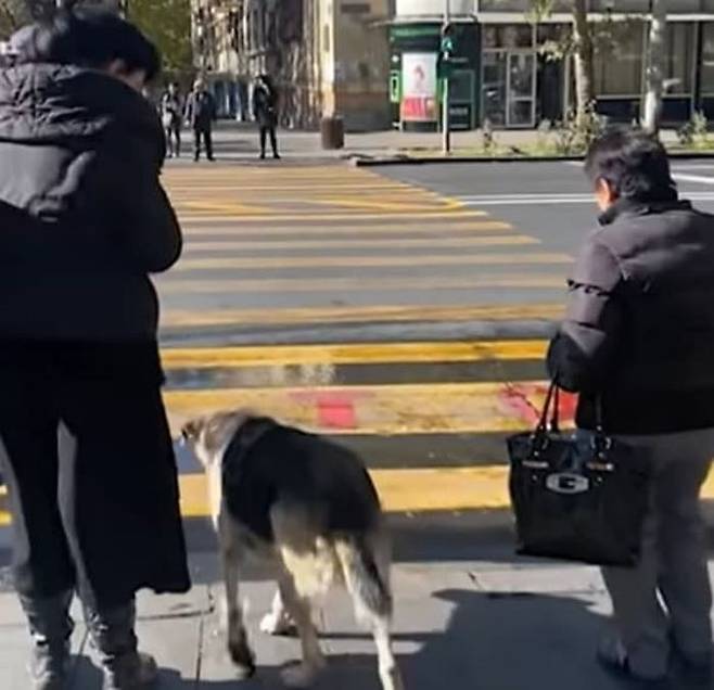 이후 빨간불이 초록불로 바뀌자 자리에서 일어나 건너는 강아지 모습이 정말 많은 생각을 하게 만듭니다.