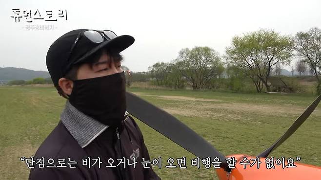 여기 비행장을 보시면 공항 활주로처럼 아스팔트가 쫙 깔려 있지는 않고, 잔디밭이에요. 단점으로는 비가 오거나 눈이 오거나 그러면 비행을 할 수가 없어요. 땅에 물이 차서요. 여름에 장마 시즌이 오면 매출이 많이 감소해요. 그때는 좀 쉬고 있습니다.