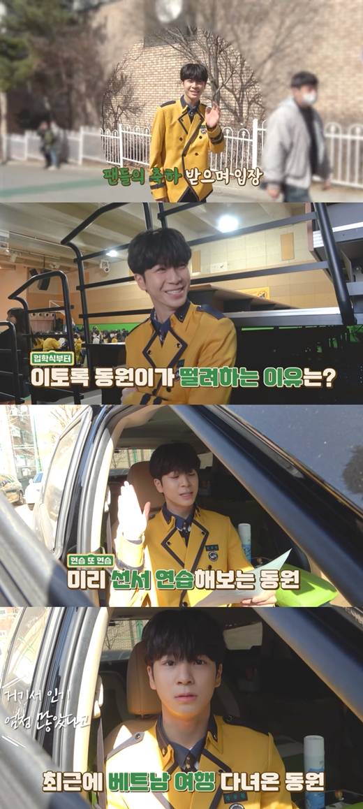 공개된 영상에서 정동원은 서공예 특유의 노란색 교복을 입은 채 등장했다. 훌쩍 큰 정동원의 훤칠한 키와 훈훈한 비주얼이 시선을 사로잡았다. 정동원은 입학을 축하하기 위해 모인 팬들의 환호를 받으며 학교로 들어섰다.