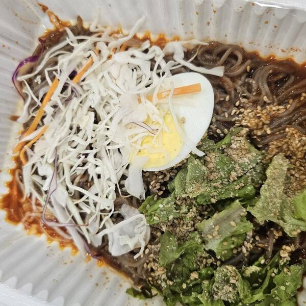 족발 자체는 삶은 고기이지만 문제는 그 위에 뿌려지는 소금, 마늘소스, 쌈장, 그리고 막국수입니다.