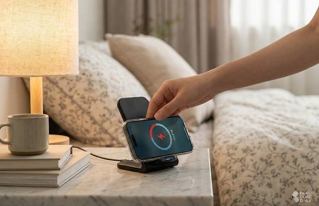 납작하게 접히는 이 무선 충전 패드는 파우치에 쏙 들어가 휴대가 간편하다. 사무실이나 침대 머리맡에 두고 써도 손색이 없다. 듀얼 코일 방식이라 어떤 방향이든 올려놓기만 하면 충전이 되고, 15W 고속 충전도 지원된다. 알림 확인이나 영상 감상 중에도 충전이 가능해 활용도가 높다. 단, 갤럭시워치나 애플워치는 충전이 되지 않으며, 전용 충전기를 별도 구매해야 한다.