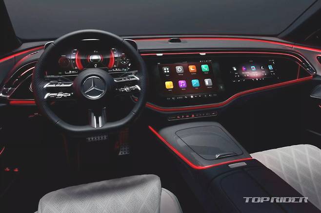 차세대 E클래스 실내에는 벤츠 MBUX 하이퍼스크린에서 영감을 얻은 MBUX 슈퍼 스크린이 처음으로 탑재됐다. 플로팅 타입 독립형 디지털 계기판과 센터페시아 디스플레이, 조수석 디스플레이로 구성됐다. 디지털 계기판은 클래식과 스포츠 그래픽 모드를 선택할 수 있다.