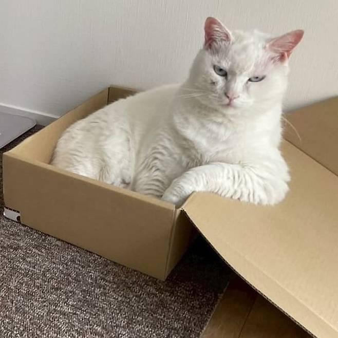 사연은 이렇습니다. SNS상에는 상자 속이 마음에 드는 듯 세상 편안한 자세로 자리잡고 앉아서 시크한 표정을 지어 보이고 있는 고양이 사진이 올라왔죠.