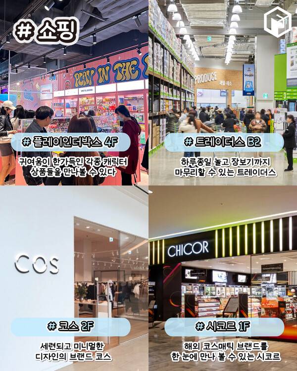 스타필드는 복합 쇼핑몰인 만큼 다양한 패션브랜드들이 입점되어 있습니다. 코스, 무신사스탠다드부터 자라, 아르켓등 국내외 스파브랜드부터 고급 화장품 편집샵인 시코르까지 쇼핑의 폭이 넓어 무리없이 쇼핑이 가능하실 겁니다.