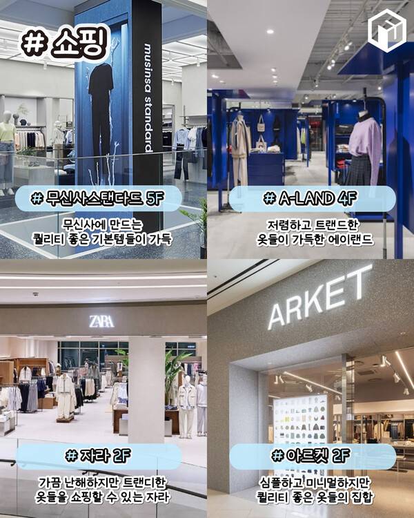 그 외에도 패션잡화, 스포츠 매장, 뷰티, 키즈 브랜드들이 입점되어 있습니다.