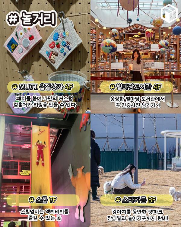 또 스릴넘치는 엑티비티를 즐길 수 있는 스몹과 애견 동반 가능한 펫파크인 스타가든까지 준비되어 있으니 어른, 아이뿐만아니라 반려동물까지 하루종일 즐길거리가 풍부한 스타필드입니다.
